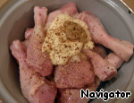 - Приправа ("Для курицы и стейка" - смесь перцев: черный, белый, чили; паприка, кориандр, семена горчицы, чеснок, морская соль (21%), лук, помидоры, куркума) — 1/2 ч. л.