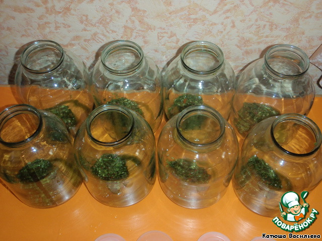 8 бутылей подготовить удобным для вас способом. Я, для этого рецепта, их тщательно мою и обдаю кипятком. Подготовим продукты.