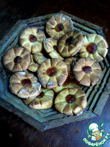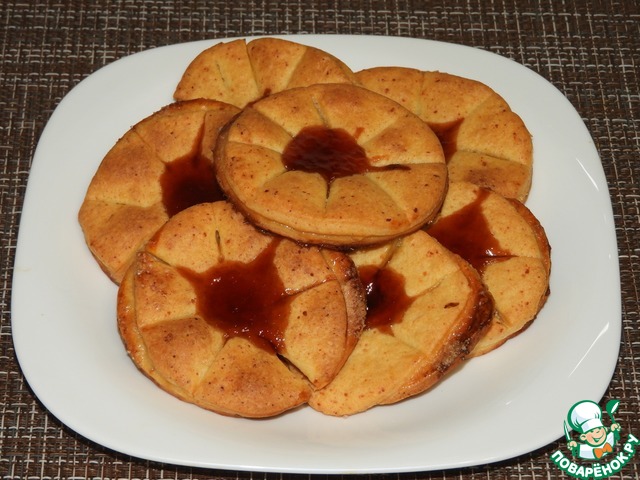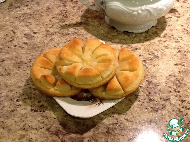 Накрыли вторым кружном, по центру примяли пальцем, нарезали на лепестки. В углубление насыпали сахар или положили джем.