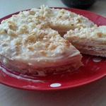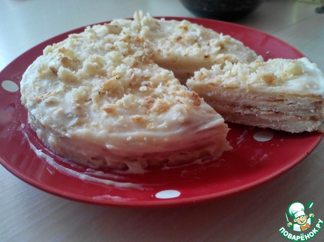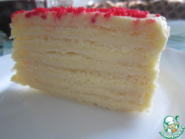 Можно приготовить торт «Наполеон». Испечь один большой пласт, нарезать, промазать кремом и готово.