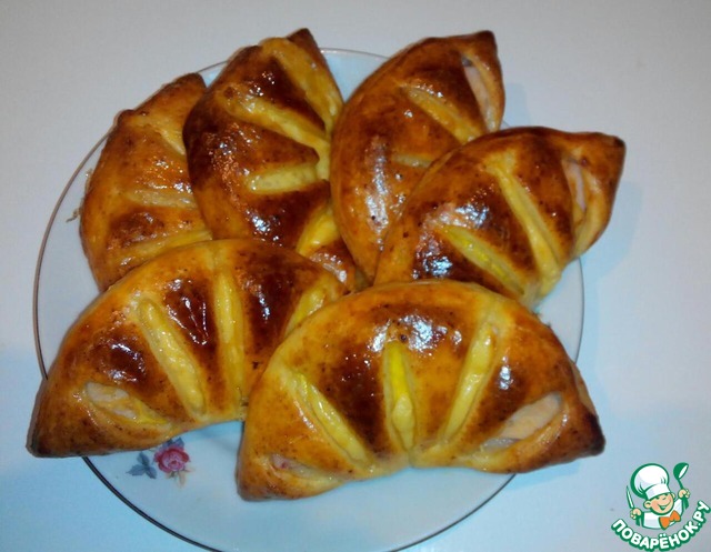 Можно нарезать тесто на квадраты. В центр положить не жидкую начинку, защепить с 4-х сторон. Готовы булочки-пирожки.