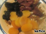 Подготовьте сухофрукты и орехи (чернослив и курагу запаривать не надо), пропустите их вместе через мясорубку.
