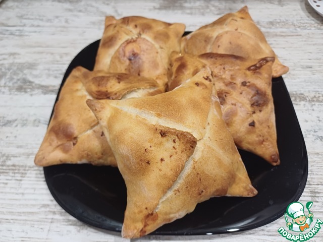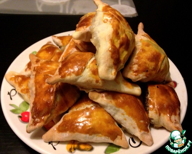 Конечно, нужно было положить швом вниз, но мне захотелось, чтобы самсушки были красивыми, а они немного раскрылись. Ну это поправимо, зато на вкус были отменные.