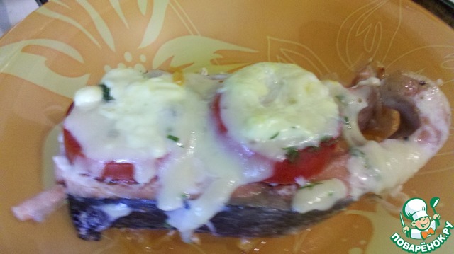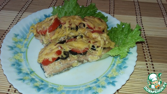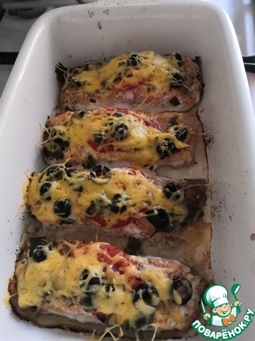 Нежная, ароматная семга под облаком из маслин, помидоров и сыра! Требует минимум времени и усилий в приготовлении и максимум удовольствия при поедании!