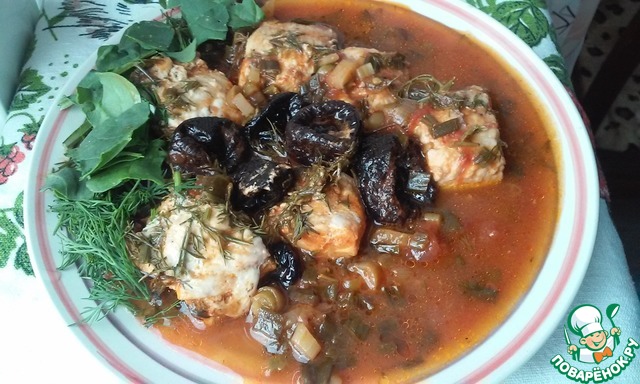 Семга с черносливом в томатном соусе