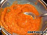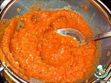 В блендере измельчаем томатную массу и протираем ее через сито.