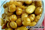 Сироп к этому времени уже готов, и мы отправляем нашу ореховую смесь в него. Оставляем покипеть минуток пять, пусть каждый орешек покроется слоем сиропа и проникнется общим настроением.
