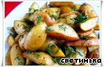 Переходим к острым картофельным долькам. Урожай картохи уже собран, весь, до самой малипусенькой, так как жабка, она ж завсегда рядом. И вот эту мелочь я и использую в данном блюде. Мона, конечно, и обычного размера картошку, но ее придется почистить.