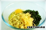 Измельчаем арахис (пикантней, конечно, с грецкими орехами, но их кто-то уже приговорил), натираем сыр, мелко нарезаем зелень, выдавливаем через чеснокодавку чеснок, ну, и яйцо, туда ж. Все перемешиваем и оставляем передружиться.