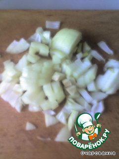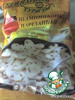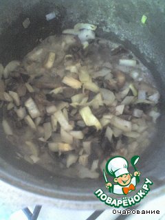 Лук и шампиньоны нарезать, обжарить.