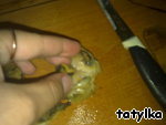 Делаем продольный разрез ножом (не до конца) в передней части рапана.
