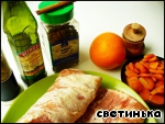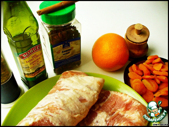 Ингредиенты для «Рулет из свинины с курагой и апельсиновым соком»: