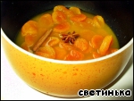 Уберите бадьян и корицу, сок не сливайте. Пробейте курагу блендером в пюре.