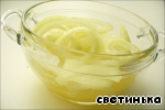 Для гарнира нарежьте лук тонкими кольцами. Смешайте оливковое масло, лимонный сок и соль. Оставьте лук в маринаде на 30 минут. Пусть поразмышляет о происходящих с ним жизненных метаморфозах.