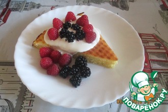 В тот день была плохая погода - на улице было хмуро, лил дождик. Гулять мы не пошли, и мне захотелось сделать что-нибудь вкусненькое… Но настроения мастерить что-то долгое - не было (сломался компьютер - подарок мужа), поэтому я остановилась на быстром, но очень вкусном рецепте Ketti-lis Безе «Мокко». После его приготовления передо мной встала задача утилизации желтков. В холодильнике была пачка творога и 2 творожных сырка с вишней. Появилось настроение, идеи приходили по ходу приготовления. Получилось вкусно! И я хочу поделиться с вами рецептом, т. к. готовила впервые, и рецепт был «из головы», то для себя (на будущее) и для вас, буду приводить «исправления» и улучшения в приготовлении.
