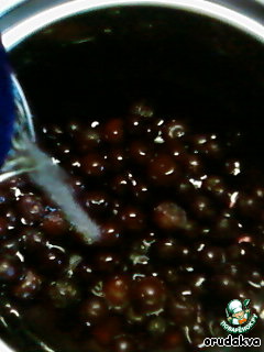 Смесь залила вишнёвым компотом, тщательно перемешала.