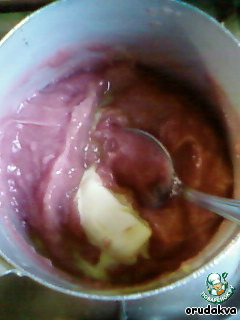 Поставила варить на маленький огонь до загустения, постоянно помешивая.