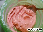 Мне очень захотелось как-то обозначить вишневый цвет (к сожалению сырки имели сильный вишнёвый вкус, но не цвет), поэтому я капнула капельку пищевого гелевого красителя красного цвета.