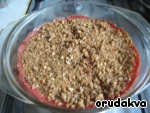 После разделывания вышеупомянутого десерта Ketti-lis у меня осталась крупная крошка безе, которой я посыпала верх запеканки. Можно использовать любое готовое безе, просто раскрошив его.