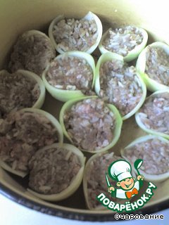 На дно кастрюли плотно выложить нафаршированные чашечки