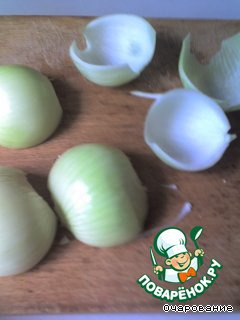 Затем воду слить, лук разрезать поплам и разобрать на чашечки.