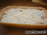 Дно керамической посуды смазать маслом, заполнить слоем отварного риса, затем слой фарша, снова рис. Сверху посыпать тертым сыром и запечь в духовке в течение 7-8 мин.