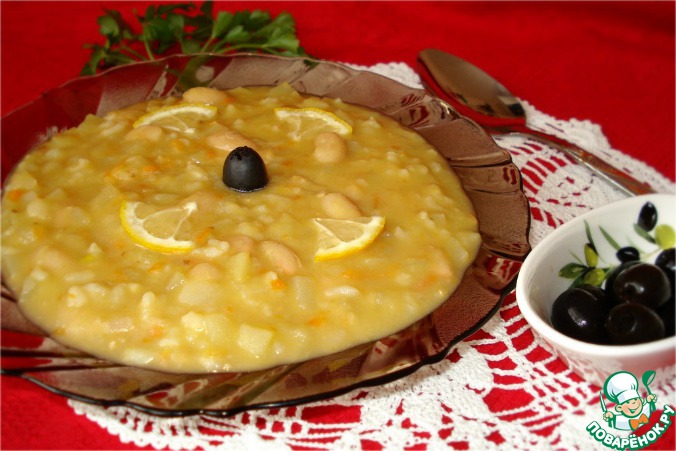 Особенно хороша похлебка с лимонным соком, оливками и брынзой. Я подаю ее обычно с мелко нарезанным лимоном, присыпанным черным перцем.