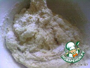Маргарин размягчить, можно немного подтопить, не доводя до кипения, добавить сметану, сахар, соль, яйца - перемешать, добавить муку с разрыхлителем. Замесить довольно густое тесто.