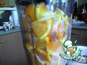 Апельсины нарезать на кусочки вместе с кожурой, вынимая семечки и измельчить в блендере в однородную массу.