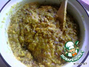 Смешать апельсиновую и изюмно-ореховую массы, добавить сахар.