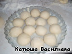 Далее делаем шарики из теста и выкладываем их в форму, смазанную сливочным маслом.