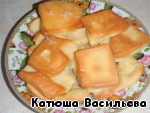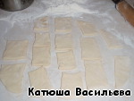 Из оставшегося теста раскладываем пласт толщиной 5-7 мм, разрезаем на квадраты.