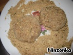 Из полученного фарша слепить котлетки, обвалять в панировочных сухарях.