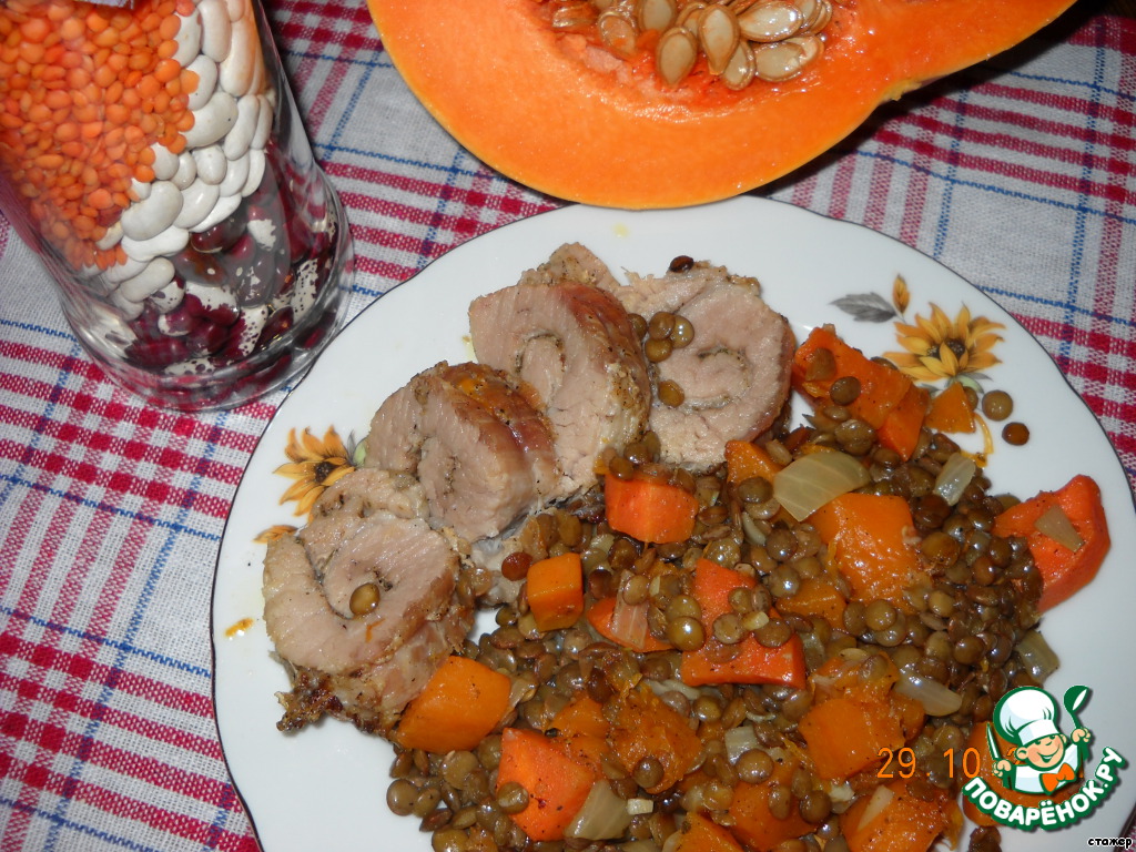 Рецепт «Свинина, запеченная с чечевицей и овощами»: