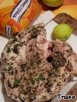 Промыла она кусок мяса свиного, обсушила, натерла солью, перцем и травками. Сбрызнула лаймом и оставила мариноваться на ночь.