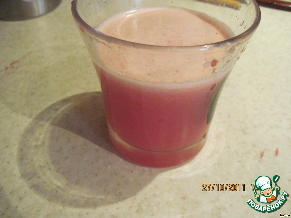 Варим на маленьком огне, непрерывно помешивая до загустения, у меня сок в процессе из розового стал оранжевым