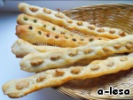 Руки щедро смазать маслом и формировать длинные, округлые полосочки, которые уже начинают напоминать палочки !