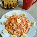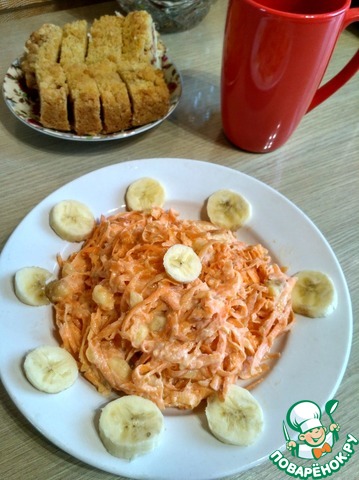 [+5]Морковь вместе с бананом, сметаной и ложкой мёда измельчила в измельчителе.