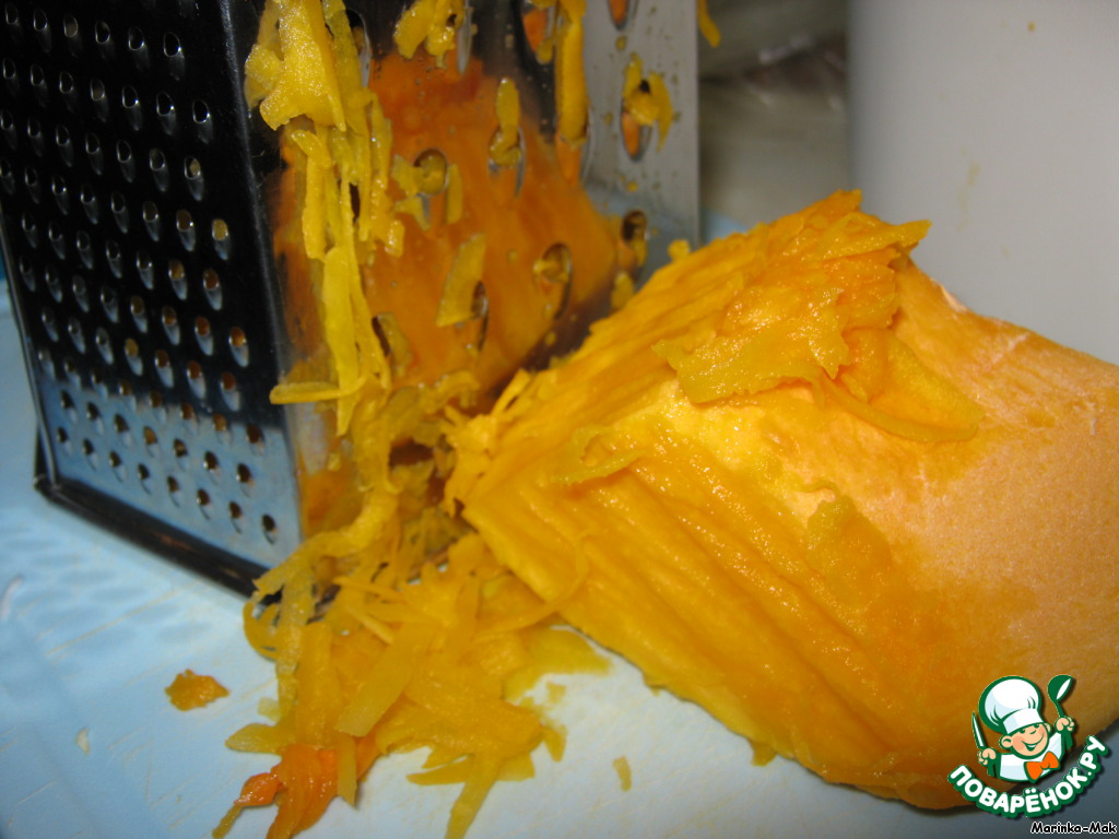 Натереть тыкву на крупной терке.