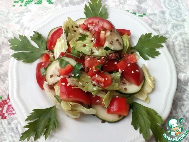 Витаминный, совсем не калорийный, и в тоже время очень вкусный салат. Можно ипользовать как отдельное блюдо или же как гарнир.