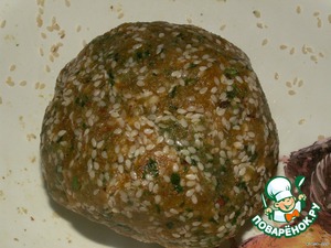 Курагу, орехи и зелень прокрутить через мясорубку, смешать и добавить кунжут.