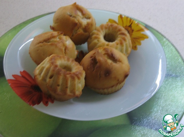 Начинка - кусочек яблока и чайная ложка варенья (для каждого кекса).