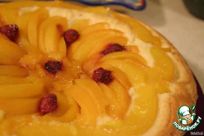Пирогов с персиками на сайте немало... вот еще один вариант. Назвала его "быстрый", так как приготвление теста занимает минут 7 -10... и все, осталось только дождаться выпекания - и мягкий и вкусный пирог к чаю готов!