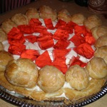 Очень хотелось испечь что-то легкое и праздничное. И тут мне попался рецепт торта "Сент-Оноре" и, как это часто со мной бывает, моя фантазия устремилась вдаль. Результат восхитил моих родных, поэтому решила поделится рецептом и с Вами.