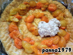 Отверстия в спирали заполняем абрикосами. Я использовала домашние консервированные абрикосы в собственном соку, но, думаю, что очень хорошо подойдут и сливы, и персики.