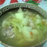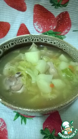 Савойскую или белокочанную капусту режем крупными кусками, выкладываем в кастрюлю, добавляем воду, соль, перец, и варим до готовности. За минут 10 до окончания добавляем нут. В оригинале, нужно ещё добавить макароны,но я не добавляю.