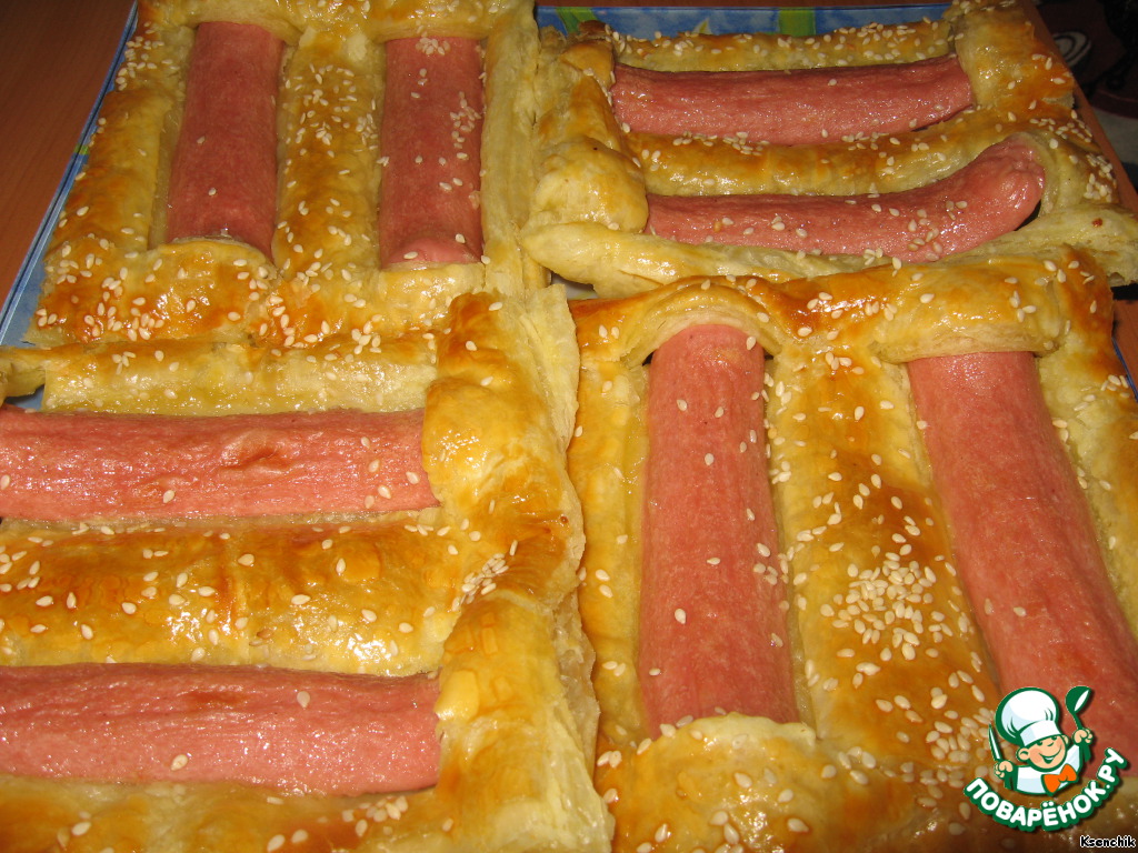 Рецепт из разряда "гости на пороге" или как из ничего сделать что-то. Согласна, что сосиски - не самая здоровая еда, но как хочется побаловать себя "вредными вкусностями", особенно если дети этого не видят. Идея взята из журнала "Блик".