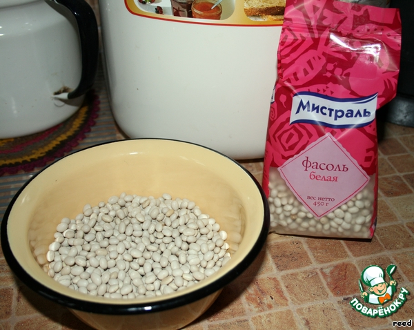 Тем временем фасоль сварилась, кастрюля в дуршлаг перевернулась. Дуршлаг под ведро с водой встал, ведро опрокинулось, фасоль промылась и в миску улеглась. Толокушка подлетела и давай на фасоли ламбаду танцевать и её мять. Когда все хорошенько помято было, курочка туда лук, зелень, 1 яйцо, перец добавила и оставшейся чеснок выдавила. Все перемешала.