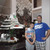 Мясо вынуть, обсушить, слегка посолить, поперчить, натереть специями. Сделать надрезы и поместить очищенный и нарезанный чеснок.