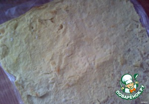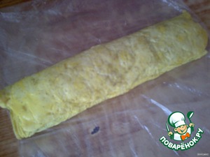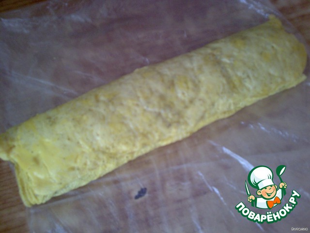 • Скатать в рулет и поставить в холодильник на 1,5-2 часа. Подавать на стол, порезав на порционные кусочки.